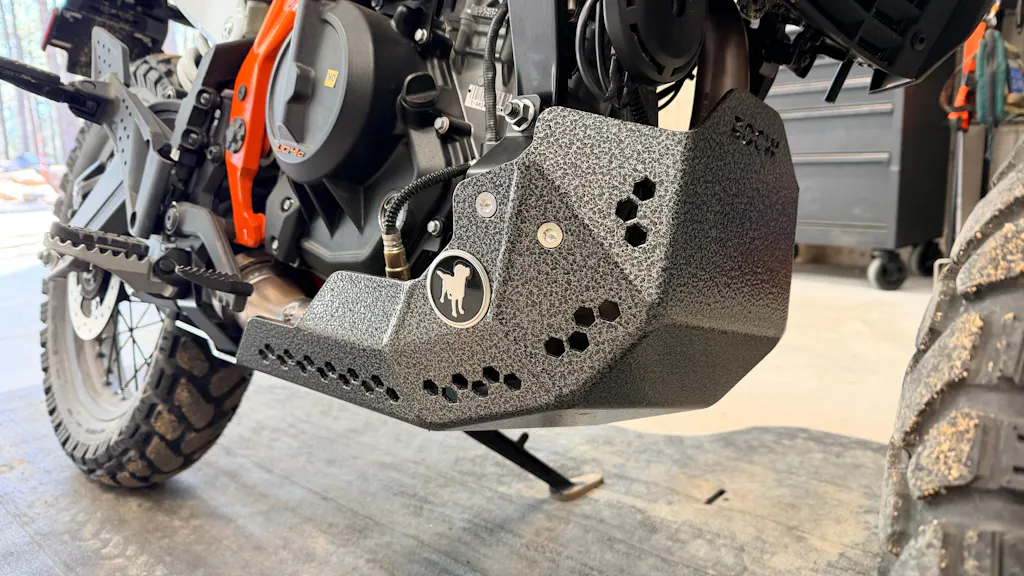 Knowing how much more off-road capable the new 390R is compared to the previous 390, we wanted to make sure our skid plate was designed for abuse and the rugged off-road use we expect this bike to be used for.